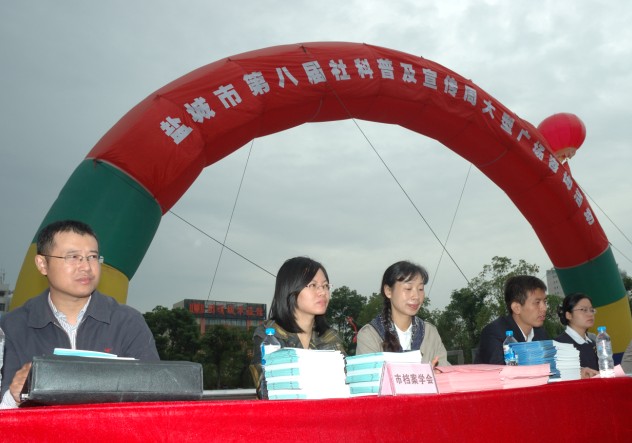 9月20日,由盐城市委宣传部、市社科联举办,数十家单位参加的市第八届社科普及宣传活动在市区迎宾公园举行。作为此次活动的参展单位之一,市档案局精心筹备,认真组织,设计、制作了六块展板,图文并貌地展现了近年来盐城市档案局在市委市政府的领导和上级主管部门的指导下,所取得的突出成就以及群众查档利用等情况说明。并编写、印制了《<档案法>宣传材料》、《档案知识普及读本》、《建立家庭档案好处多》等贴近群众生活的档案知识宣传材料。