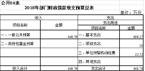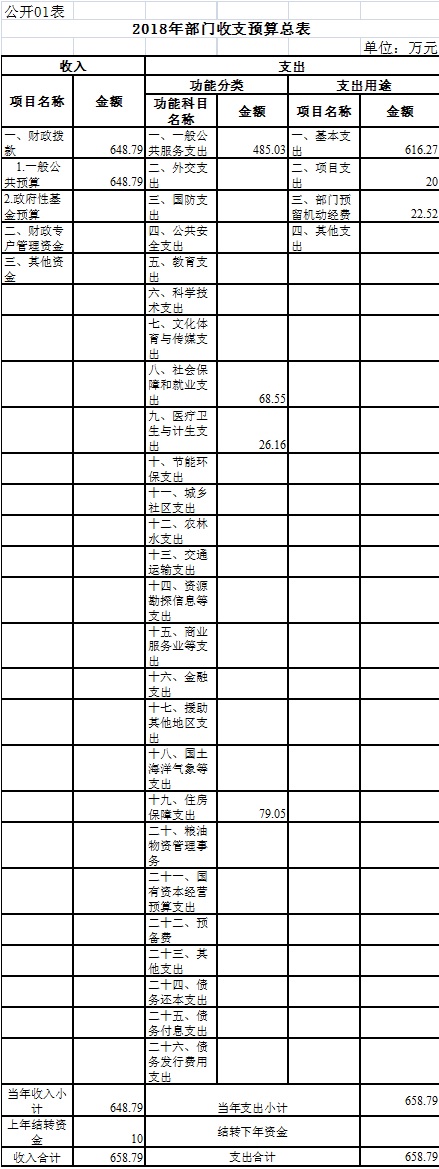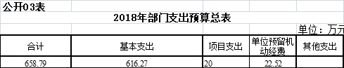 2018年度收入、支出预算总计658.79万元,与上年相比收、支预算总计各减少19.74万元,下降2.91%,主要原因是退休人员基本养老金由盐城市机关事业养老保险中心发放了。其中: