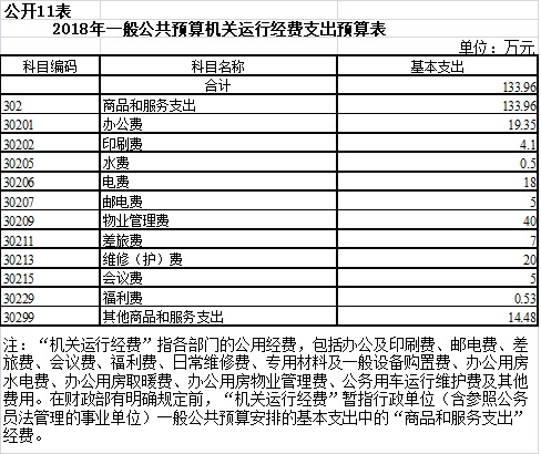 十一、一般公共预算机关运行经费支出预算表