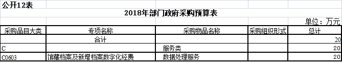 2018年度政府采购支出预算总额20万元,其中:拟购买服务支出20万元。
