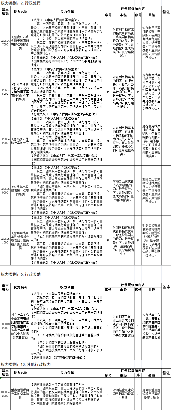 盐城市档案局部门行政权力清单