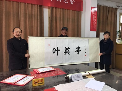 4月4日,清明节前夕,射阳县档案馆接受了省党史办原一处处长张开明、射阳县书画家协会主席时旭东的三件书画作品捐赠。这三件作品分别是原南京军区司令员向守志题写的“叶英亭”书法一件、原南京军区政委傅奎清题写的“叶英烈士纪念园”书法一件、著名画家胡进良《雄风》国画一件。