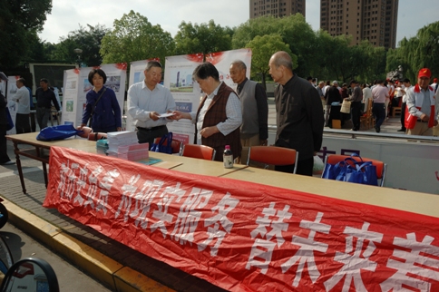 (市馆工作人员向参观咨询的市民发放宣传手册)