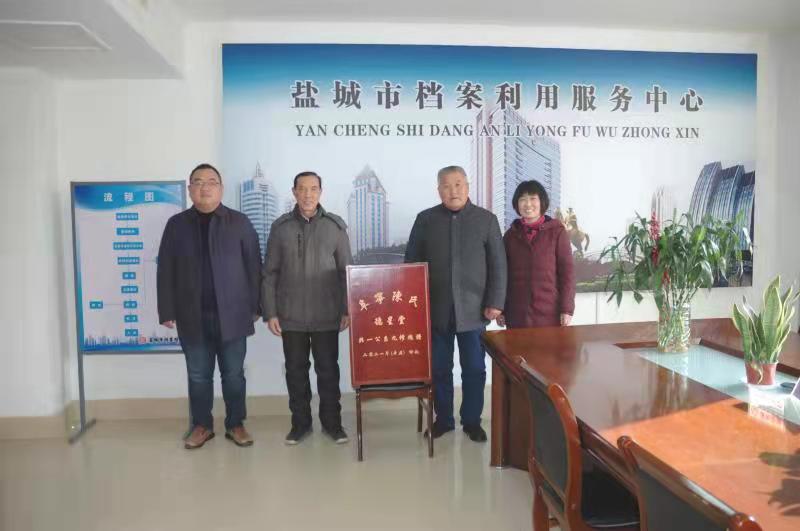 2月10日,阜宁陈氏文化研究会向盐城市档案馆捐赠了《阜宁陈氏宗谱》(颍川郡德星堂)。该宗谱为阜宁陈氏家族第九次编修,于2021年完成。