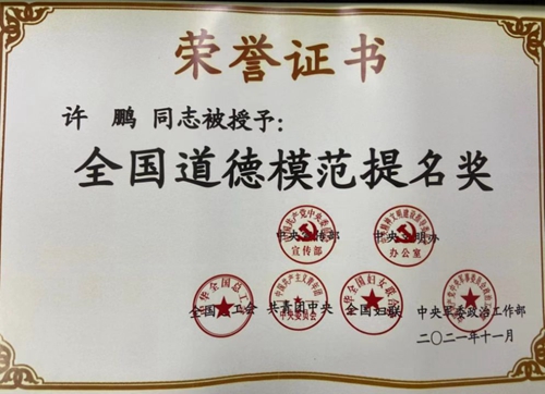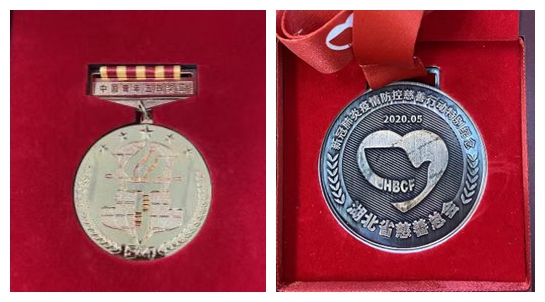 许鹏的中国青年五四奖章、新冠疫情防控慈善行动特别纪念章