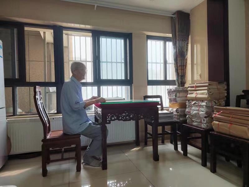 耄耋老人李树江翻看珍藏多年的《盐城广播电视报》