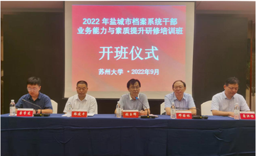 为适应新时期档案工作高质量发展的需要,提高档案工作人员的专业水平和能力素质,9月4日-8日,盐城市档案馆与苏州大学社会学院联合举办全市档案系统干部业务能力与素质提升研修培训班。市档案馆馆长张玉辉、苏州大学社会学院党委书记邓国林、副院长裔洪根出席开班式,市、县档案系统业务骨干代表近100人参加培训。