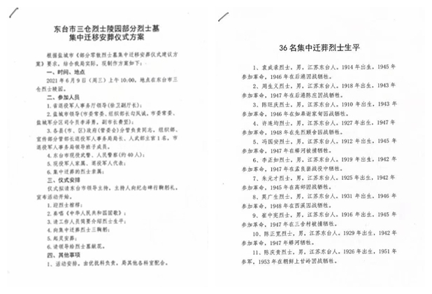 盐城市零散烈士墓(东台)集中迁葬仪式 档案入藏东台馆