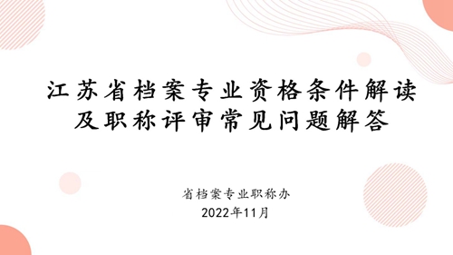 培训中,王聪从《江苏省档案专业技术资格条件(试行)》修订的背景、主要变化情况等方面详细解读了新修订的资格条件,并结合工作实际,讲解了申报过程中的常见问题和注意事项,明确了申报材料相关要求。