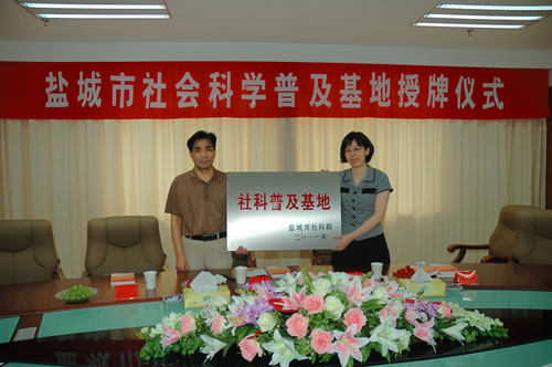 6月23日,市社科联为盐城市档案馆举行“社科普及基地”授牌仪式。市社科联副主席陈玉林、市档案局副局长赵弘迈、市社科联秘书长陈法金等人出席授牌仪式。仪式由赵弘迈副局长主持。