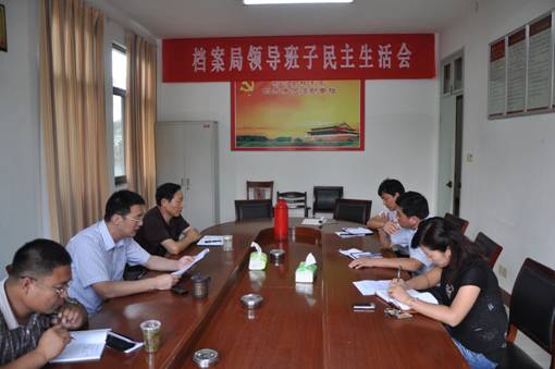 为加强领导班子及成员的思想作风和能力建设,9月20日,射阳县档案局召开了局领导班子民主生活会。为保证民主生活会的质量,会前,射阳县档案局制定了局领导班子民主生活会计划,组织班子成员学习关于作风建设、廉政建设方面的有关材料,广泛征求干部职工对领导班子及其成员和上年度民主生活会整改措施落实情况的意见。班子成员之间也进行互相交流谈心,共同排查问题,努力达到统一思想、增强纪律、相互监督、共同提高的目的。会上,射阳县档案局局长邱明哲对上年度民主生活会整改措施落实情况作了发言,局领导班子及班子成员对今年以来,工作作风和思想作风中存在的问题,进行了排查。并制定了三项整改措施:1、加强理论学习,提高服务大局的本领。2、注重班子自身建设,不断增强大局意识。3、坚持勤政为民,保持为民服务的本质。