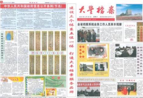 为了庆祝“七•一”党的生日,更好地宣传和做好档案工作,6月30日,大丰市档案局向全市各立档单位发放了第二期《大丰档案》报,共计300多份,全市档案人员和部分群众争相阅读。 为此,第二期《大丰档案》更加突出了生活小常识、故事、图说、灯谜及卡通画等形式。在全面报道和指导档案工作的同时,并且适当地涉及了档案资料所能“见证”现代大众媒体所关注的焦点、热点、难点等敏感话题,加强与公众的心灵沟通,共同构建和谐社会。